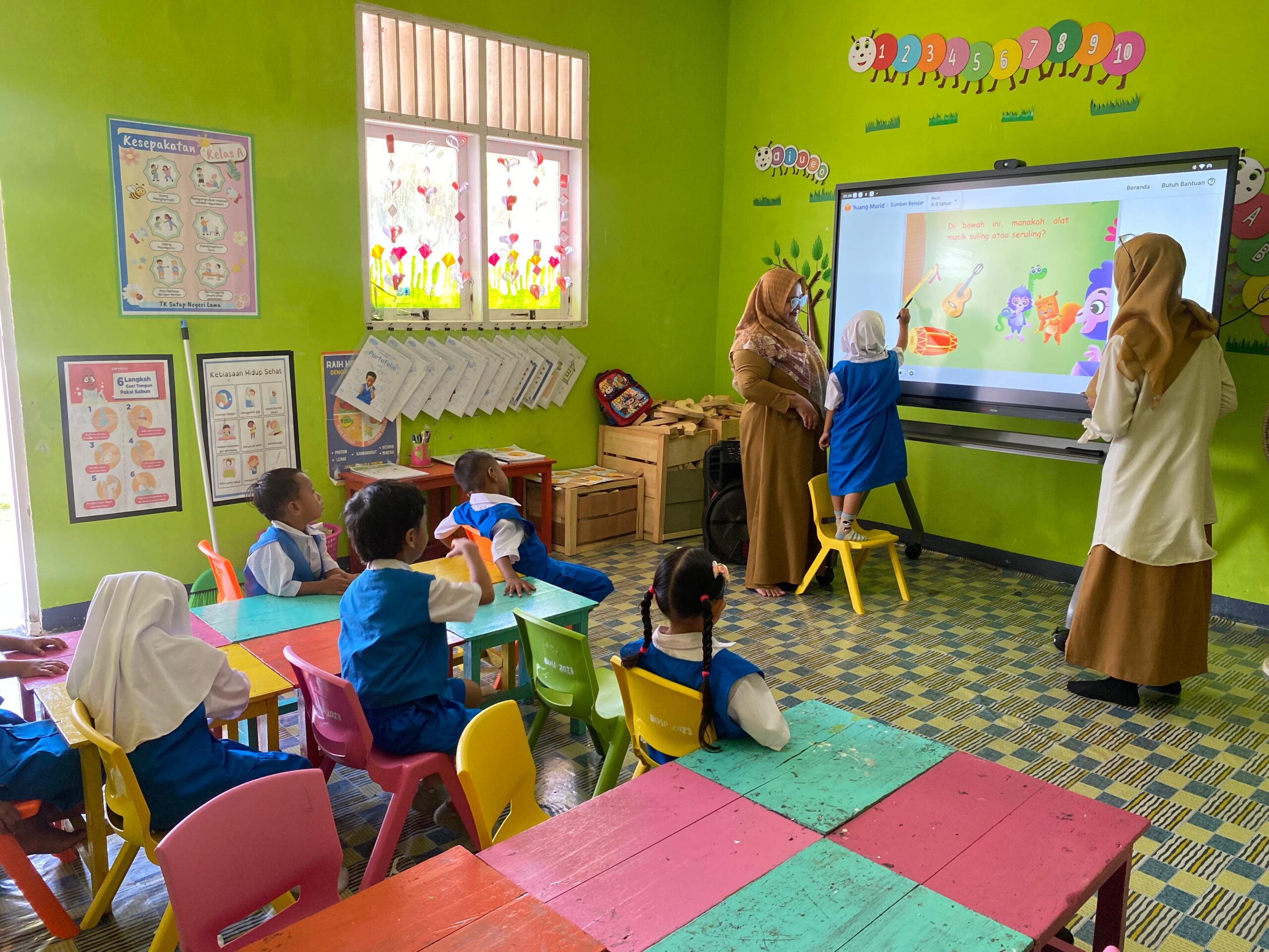 Dengan adanya Smart TV di ruang belajar, para guru kini memiliki media interaktif untuk memperkenalkan berbagai materi pembelajaran kepada anak-anak usia dini secara lebih menarik dan mudah dipahami. Anak-anak dapat belajar sambil menonton video edukatif dengan tampilan visual yang menyenangkan. Inovasi ini menjadi langkah nyata menuju sistem pendidikan yang lebih modern dan adaptif terhadap perkembangan zaman.***